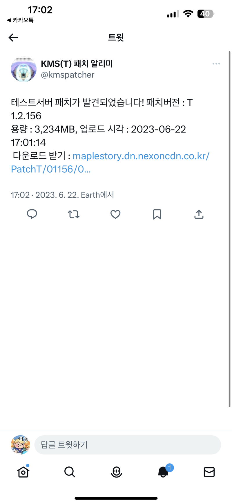 [메이플] 1.2.156 테섭 용량 : 3.2GB 작성자지나가던동전줍는사람|작성시간23.06.22|조회수394 목록 댓글 1 글자크기 작게가 글자크기 크게가 다음검색 현재 게시글 추가 기능 열기 북마크 공유하기 신고 센터로 신고 댓글 댓글 1 댓글쓰기 답글쓰기 댓글 리스트 작성자갸느 | 작성시간 23.06.22 테섭 정보 올려주는거 감사합니당 댓글 전체보기