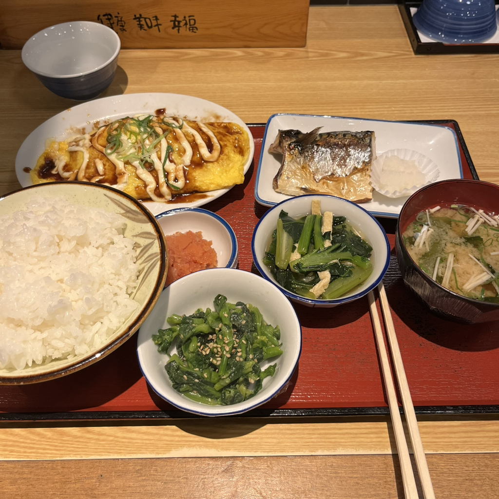 다음날 아침. 피곤한 몸을 이끌고 숙소에 짐만 맡기고 아침 먹으러 나왔음. 마지막 식사는 일본 가정식 백반으로 정했음. 휴게소 자율식당처럼 진열된 반찬을 선택하고 가져가서 먹는 방식이었는데 몇몇 반찬이 좀 짜긴 했어도 아침 식사로 먹기 좋았음. 다만 저 계란말이는 조금 느끼했음. 그래도 아침 가정식 잘 먹었읍니다.