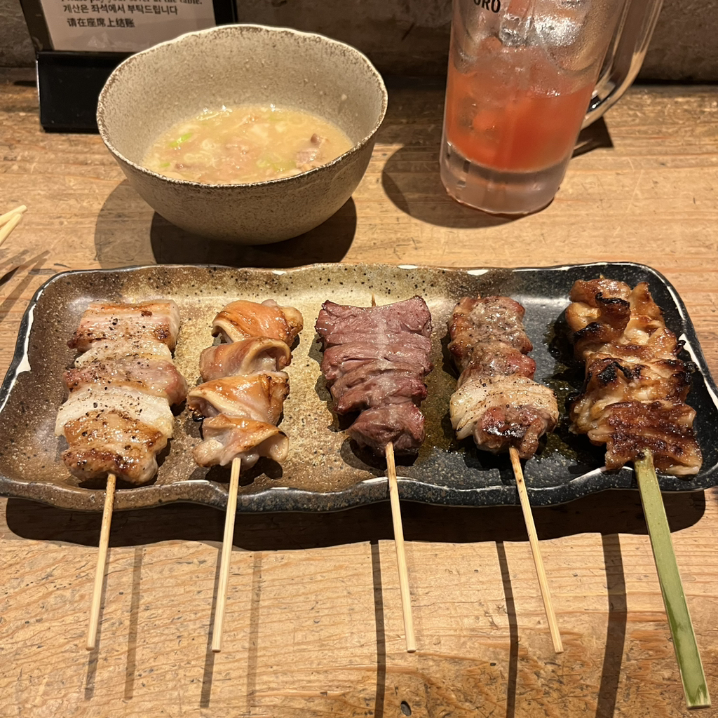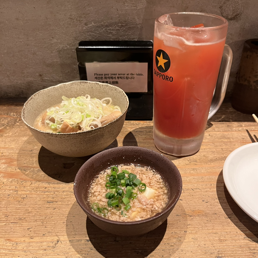 곧바로 근처 야키톤 가게로 2차 감. 관광 포기하고 식도락이랑 쇼핑에 올인. 한국어가 가능한 종업원은 없었지만(메뉴 설명 정도까지만 가능) 한국어 메뉴판 있었음. 돼지고기 특수부위들 구워주는 집이었음. 자릿세 400엔 내면 기본 안주 나오고 저는 야키톤 5종 세트랑 곱창조림 주문했음. 돼지 내장 좋아하면 곱창 조림은 꼭 시켜드세요 진짜 씬스틸러 미쳤음. 조림과 스튜 그 중간인데 정말 술안주로 최적이었음. 야키톤도 정말 맛있었음. 삼겹살, 염통, 곱창, 연골, 볼살 이렇게 나왔는데 술 안주로 너무 맛있어서 술 한잔 더 시킴;; ㅎㅎ 나올때 문 프레임에 머리를 겁나 세게 박아서 아팠음 ㅜ