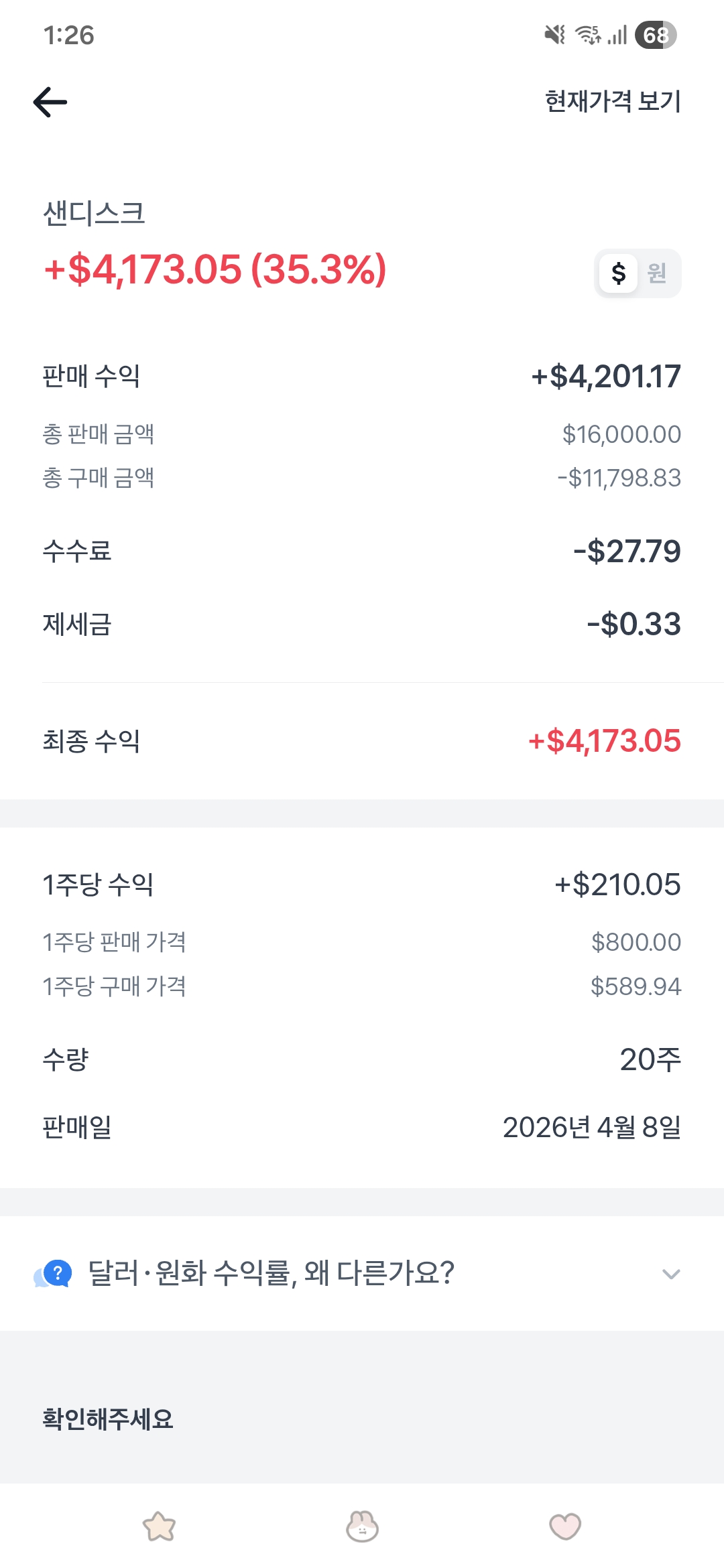 샌디스크 저꼭지에 사서 눈섭에 절반 익절 작성자달and총|작성시간26.04.09|조회수609 목록 댓글 1 글자크기 작게가 글자크기 크게가 다음검색 현재 게시글 추가 기능 열기 북마크 공유하기 신고 센터로 신고 댓글 댓글 1 댓글쓰기 답글쓰기 댓글 리스트 작성자나만운없어 | 작성시간 26.04.09 new 개고수 댓글 전체보기