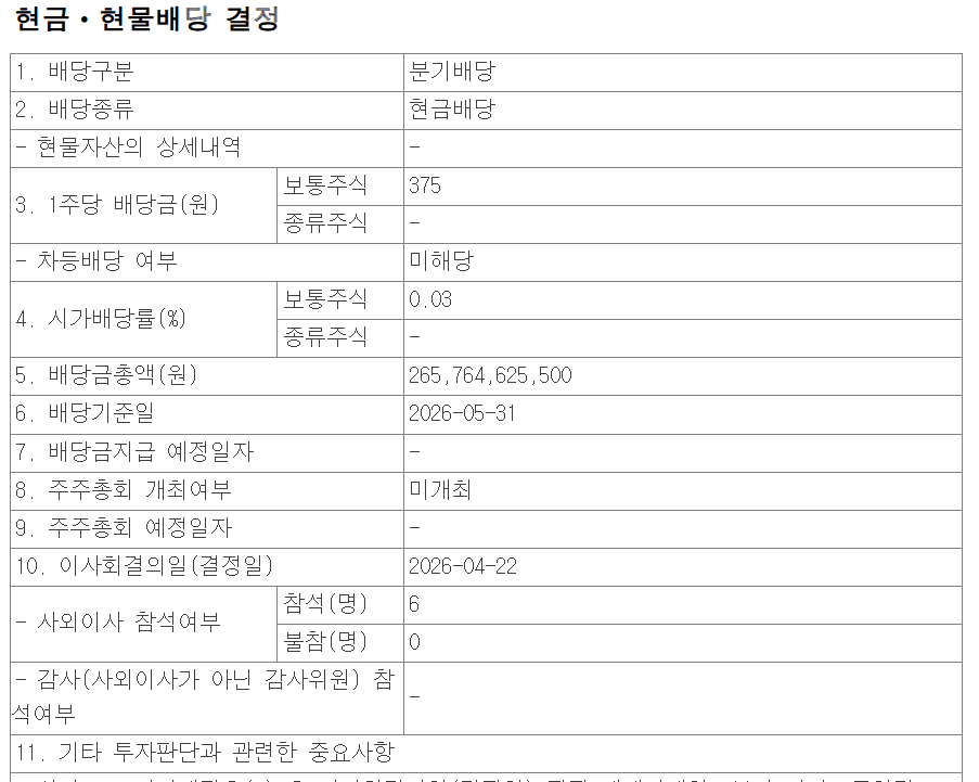너무한 수준인 하이닉스 배당금 수준 작성자하루견과먹자|작성시간26.04.22|조회수1,405 목록 댓글 9 글자크기 작게가 글자크기 크게가 120만원짜리 주식이 1주당 375원...0.03프로가 말이 되냐참고로 삼전은 22만원인데 1주당 361원직원들한테 성과금 몇십조 주는건 알겠는데 배당은 좀 잘줘라 너무하네 진짜 다음검색 현재 게시글 추가 기능 열기 북마크 공유하기 신고 센터로 신고 댓글 댓글 9 댓글쓰기 답글쓰기 댓글 리스트 작성자루카스 포돌스키 | 작성시간 26.04.22 와 ㅋㅋㅋ 375원? 레전드네 십발 ㅋㅋㅋㅋ 1억치 가지고잇어야 치킨 한마리 먹네 작성자츠노마키 와타메 | 작성시간 26.04.22 배당보다 자사주 소각이 없는게 더 큼지난번처럼 좀 화끈하게 해줘라 태원이형 작성자오로르 | 작성시간 26.04.22 여자 바꾸는데는 2조 태웠으면사,, 답댓글 작성자Phone | 작성시간 26.04.23 어허~~헤이헤이헤이!! 답댓글 작성자으헝헝엉엉넘모넘모 | 작성시간 26.04.24 Phone ㅋㅋㅋㅋㅋㅋㅋㅋ 댓글 전체보기