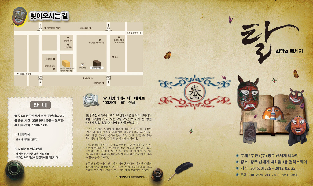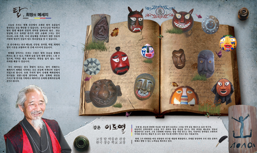 참고로 이번 리플렛은 40여년 탈 연구를 해오신 이도열 관장님의 역사가 밖으로 드러나는 컨셉입니다.