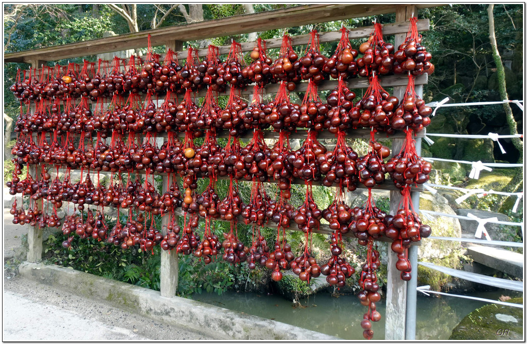 우린 신사 입구의 수례를 끌던 소상을 지나 인간의 영역을 지나 신의 구역으로 신사문을 통과해 안경 모양의 다리