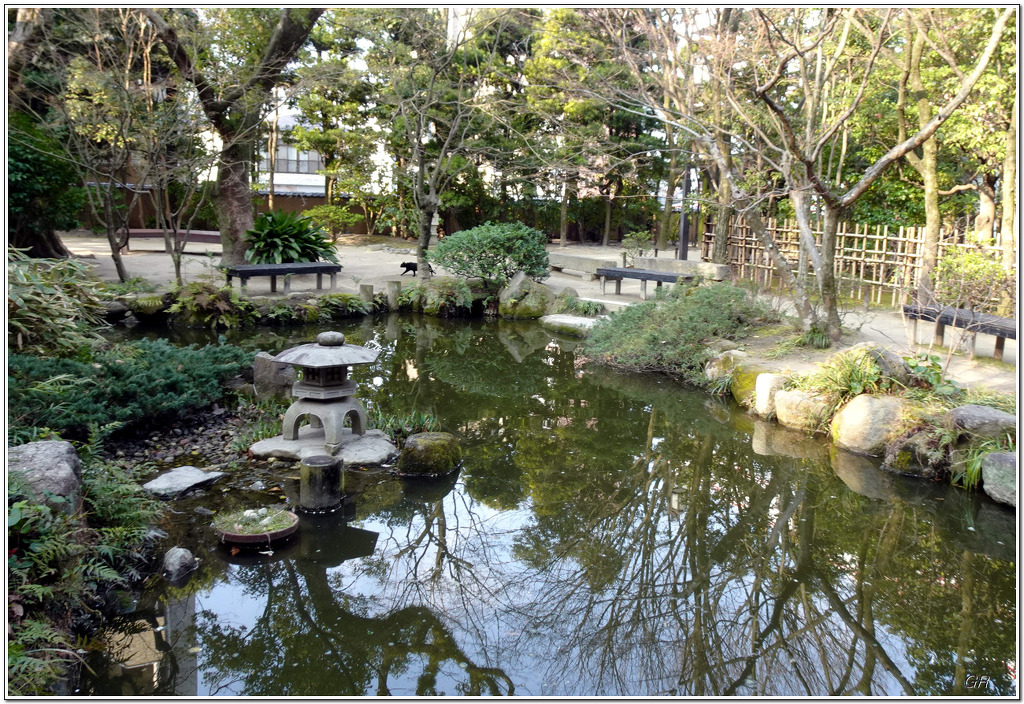 첫 번째로 잠시 들린곳은 시내 한복판에 있는 라쿠스엔이란 후쿠오카 3대 정원중 하나인 일본 전통 정원이다.