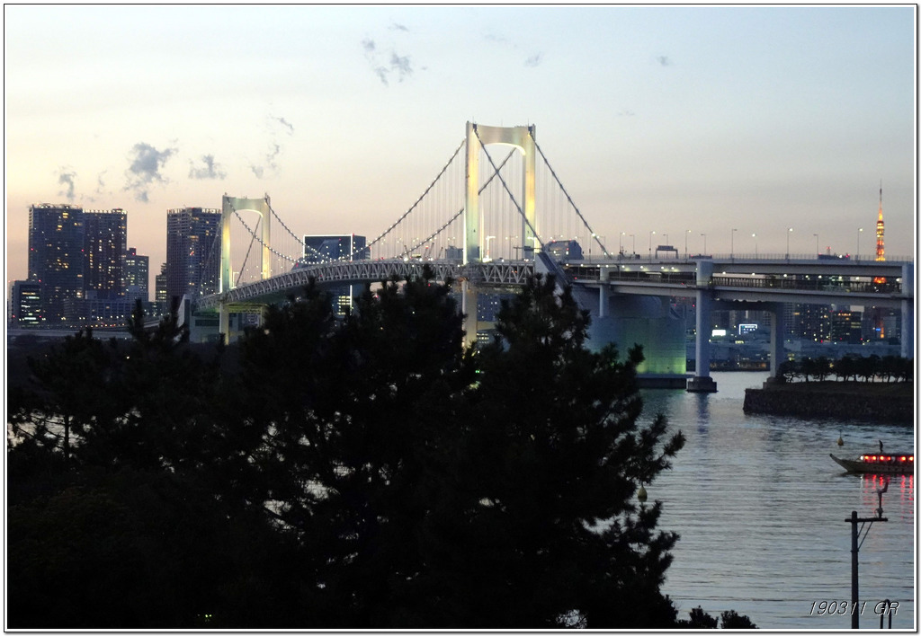 레인보 브릿지에 조명이 들어 오면 이 다리는 더욱더 아름답다.
