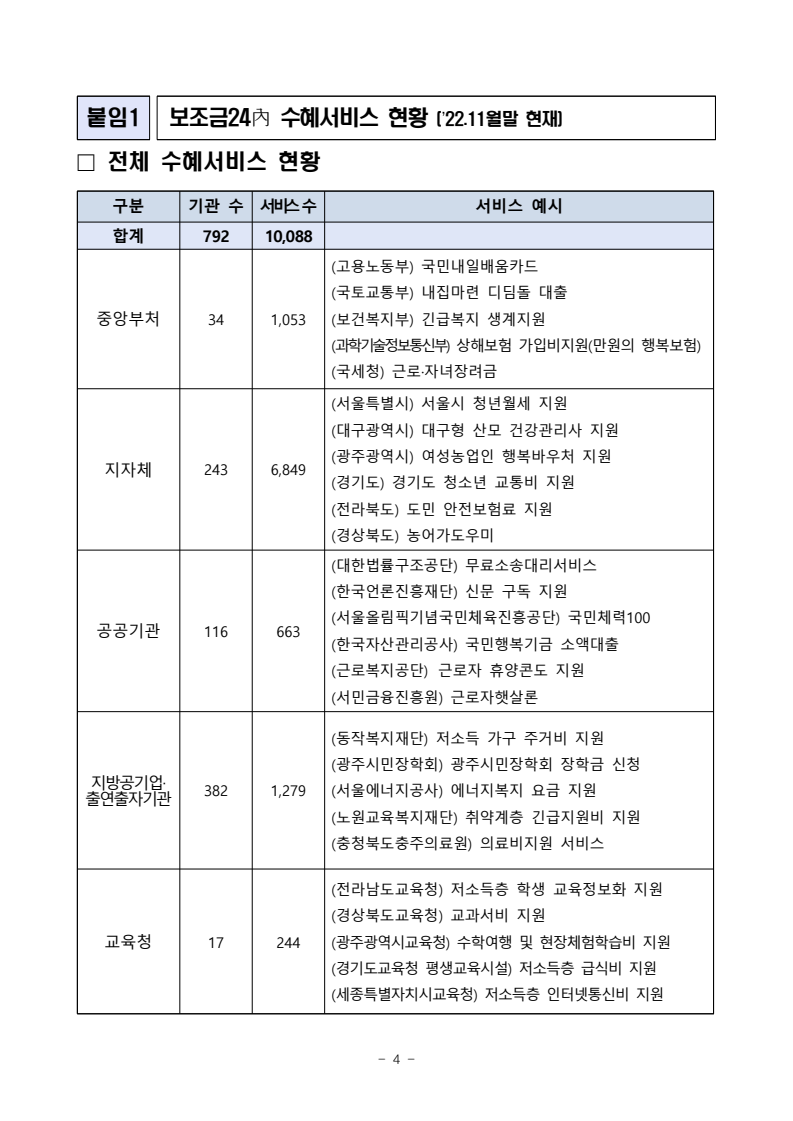- 221215 (조간) 1만 개의 혜택 중 나와 내 가족의 혜택 보조금24에서 확인(행정서비스통합추진단 정부24운영팀).hwpx [ 1.3 MB ] 바로보기