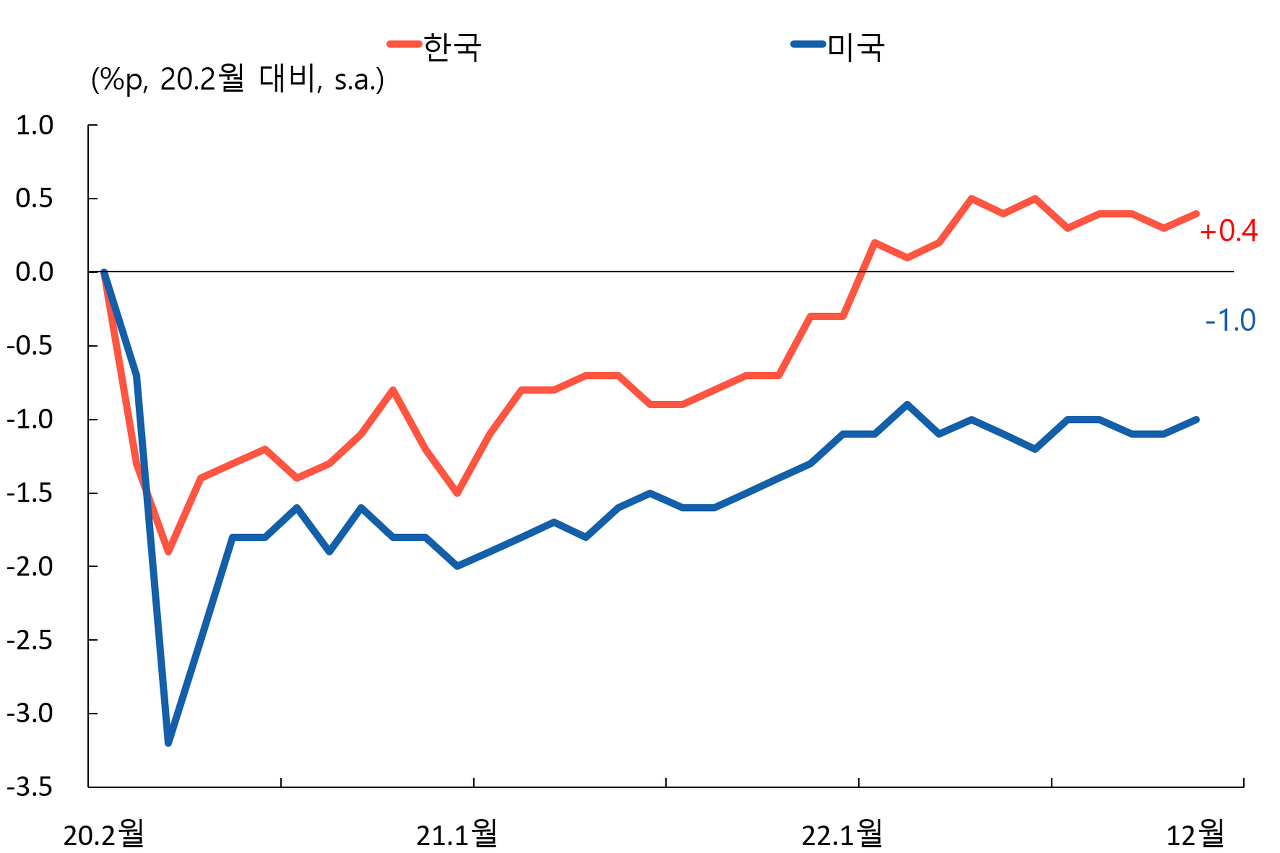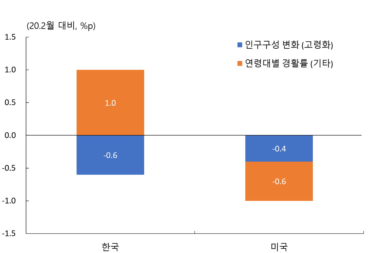 이러한 상황을 배경으로 본 Blog에서는 한국과 미국의 노동공급 회복 차이를 경기적 요인과 구조적 요인으로 분해하여 살펴보았다[2].