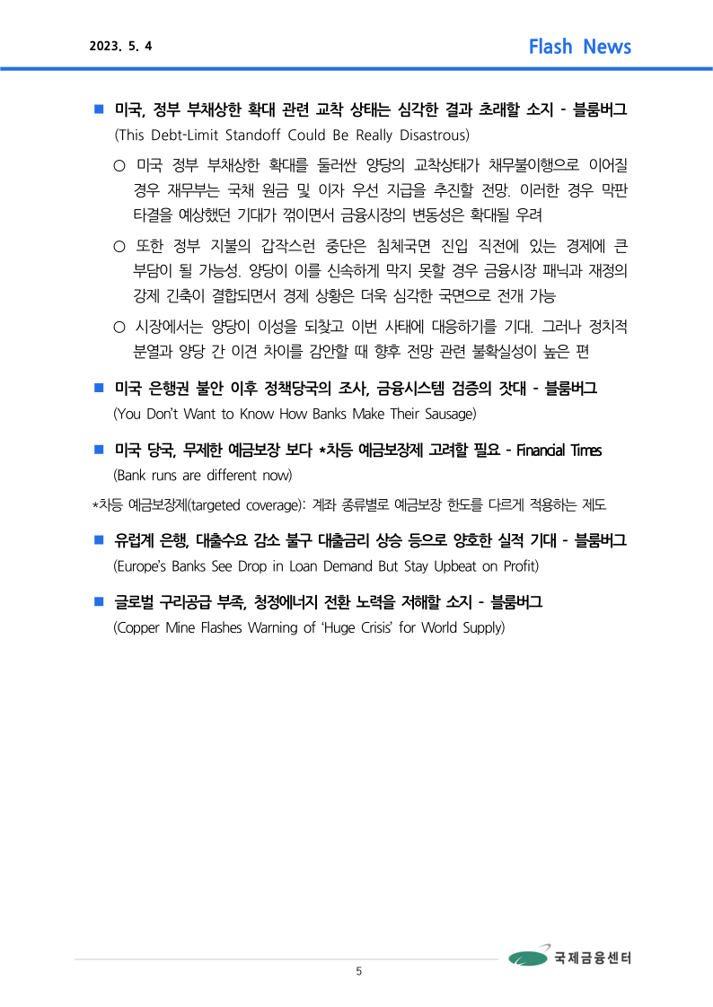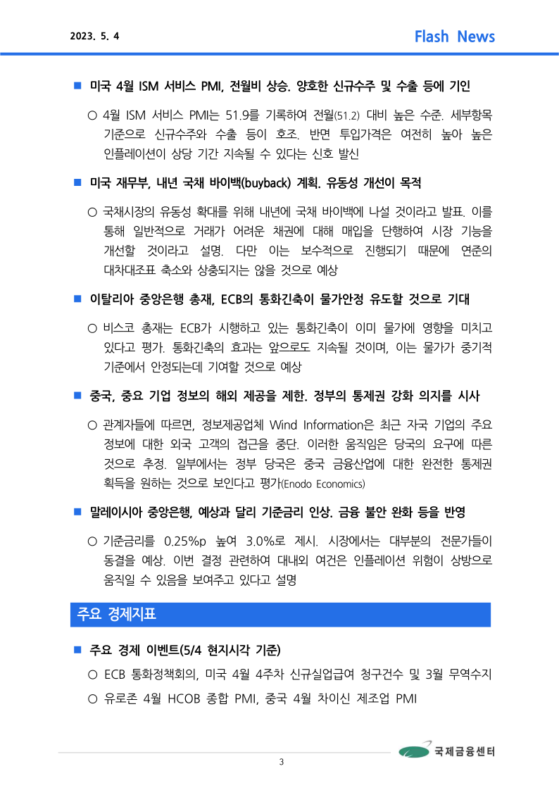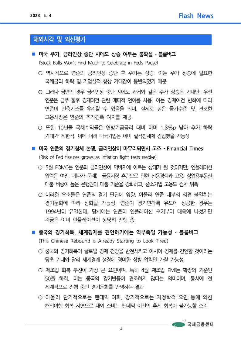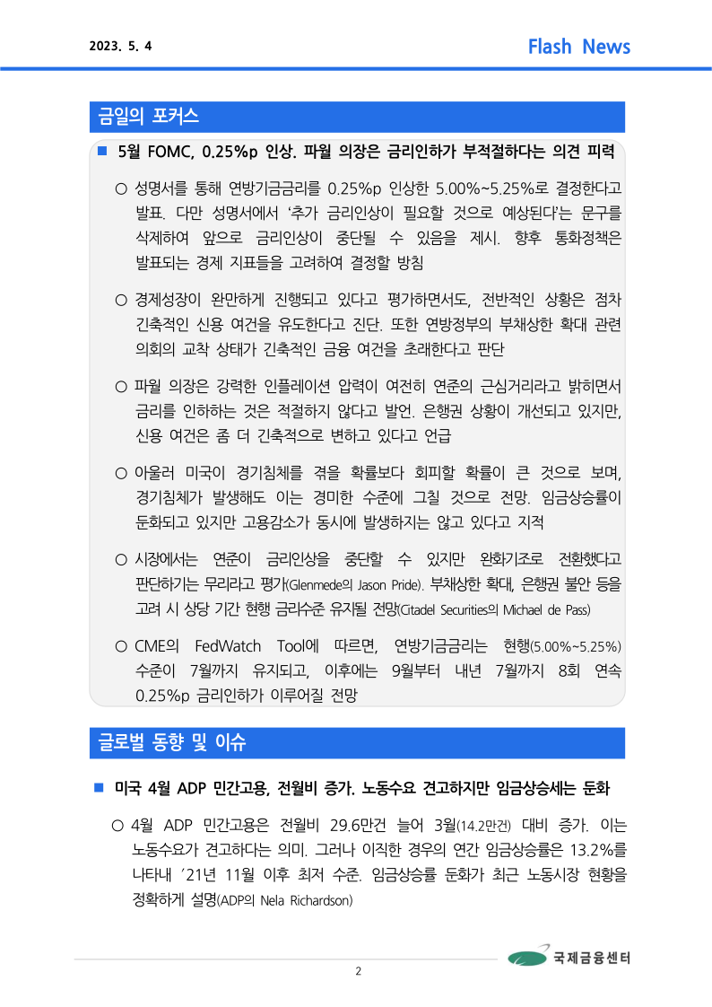 ■ 주요 뉴스: 5월 FOMC, 0.25%p 인상. 파월 의장은 금리인하 부적절하다는 의견 피력