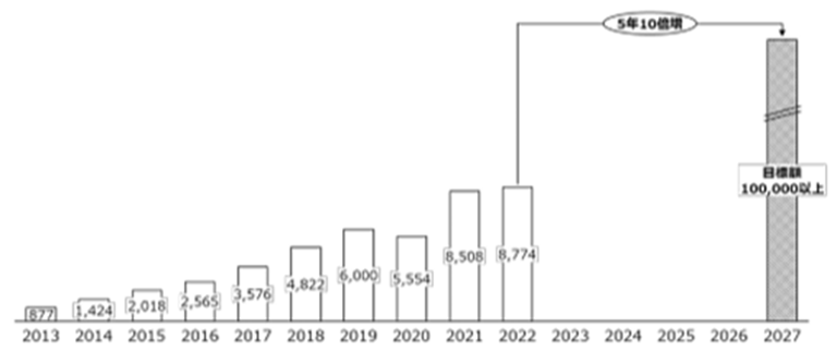 <일본 스타트업 투자액 추이 및 목표>