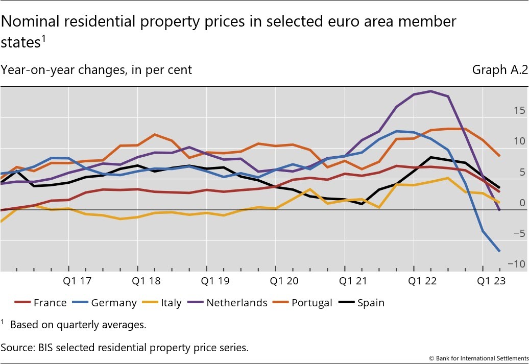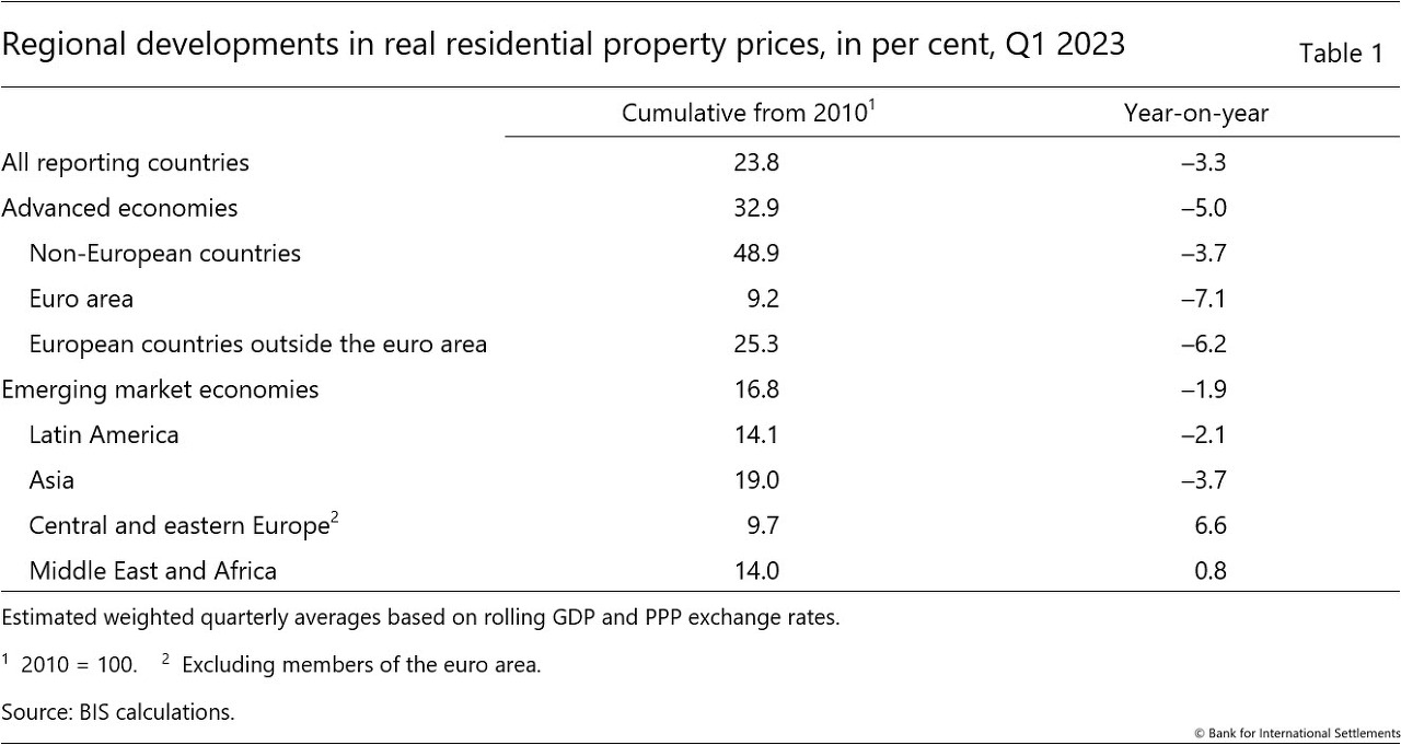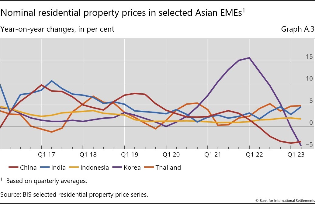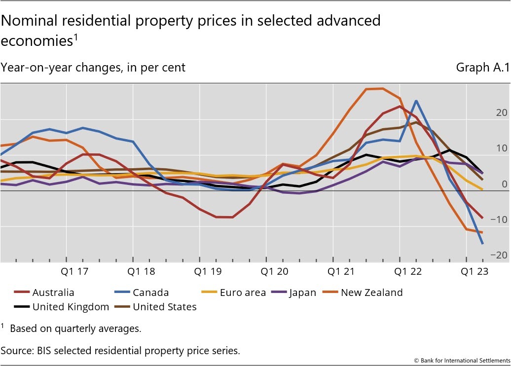 2 2022년 4분기부터 2023년 1분기까지 BIS 데이터 세트 에 포함된 경제의 70%에서 CPI의 전년 대비 성장이 완화되었습니다.명목상의 주거용 부동산 가격 추이는 부록에 나와 있습니다.