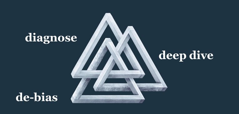 프레임 워크를 나타내는 짜여진 삼각형 : 진단, 딥 다이브, 디 바이어스