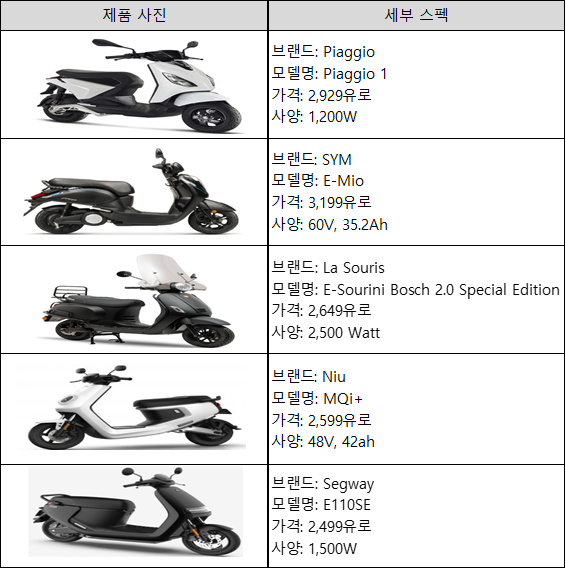 <스쿠터 판매량 5위권 회사 제품>