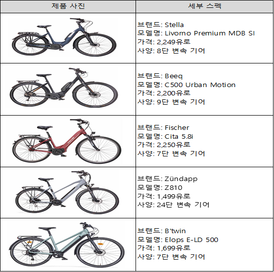 < 네덜란드 관광교통 지원기구(ANWB) 선정 최고의 전기자전거(2023년)>
