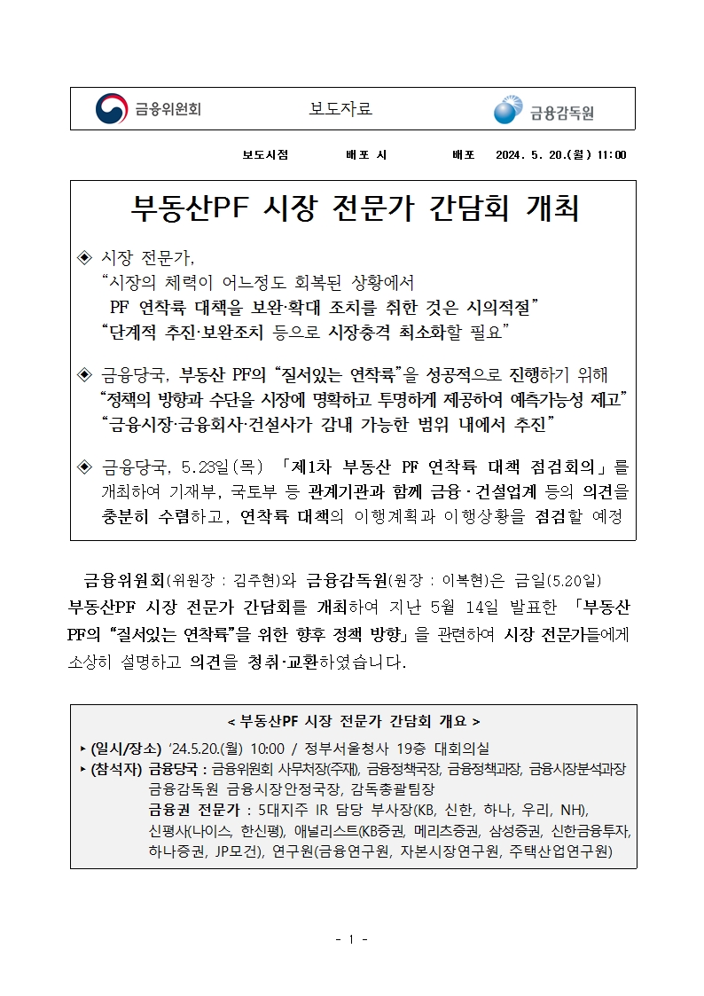 240520(보도자료) 부동산PF 시장 전문가 간담회 개최.hwp (파일크기: 683KB) 문서뷰어