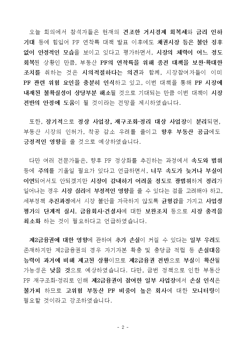 “정책의 방향과 수단을 시장에 명확하고 투명하게 제공하여 예측가능성 제고”“금융시장,금융회사,건설사가 감내 가능한 범위 내에서 추진”