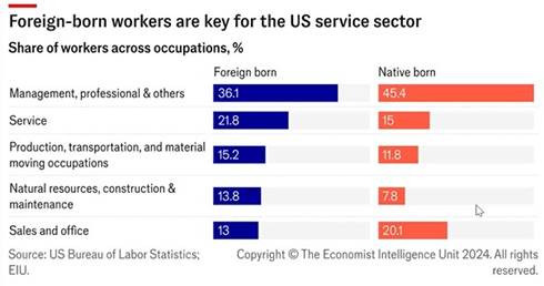 후보 별로 서로 다른 이민 정책 공약을 내세우고 있는 가운데 EIU는 트럼프 전 대통령이 대선에서 승리할 경우 소매, 의료, 호스피탈리티 산업과 같은 이민자 비중이 높은 산업군이 타격을 입을 것으로 전망했다. 바타차리야 부디렉터는 “양측 후보 모두 불법 이민자를 근절하는 데 노력을 기울이겠으나 민주당 측은 숙련공이나 노동력 부족 산업을 중심으로 한 이민 정책을 이어가는 반면 공화당은 합법적 이민 자격 수준을 높이고, 추방을 늘리는 정책을 펼 것”이라고 설명했다. 또 “코로나19 락다운 이후 경제 재개 과정에서 노동력 부족에 따른 임금 인상이 인플레이션 주요인으로 지목되었던 것을 비춰 볼 때 이민 정책의 변화에 취약한 산업은 대선 결과에 따라 인건비 부담이 가중될 수 있다는 점을 상기해야 한다”고 덧붙였다.