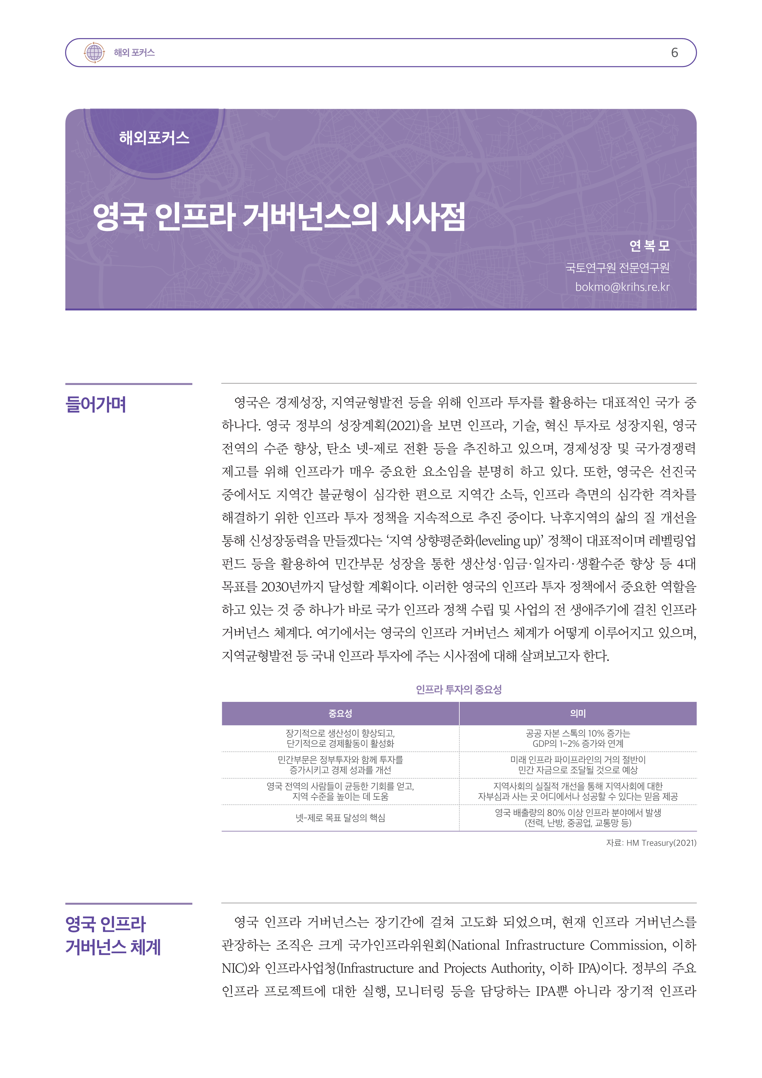 영국 인프라 거버넌스의 시사점 (연복모 국토연구원 전문연구원)