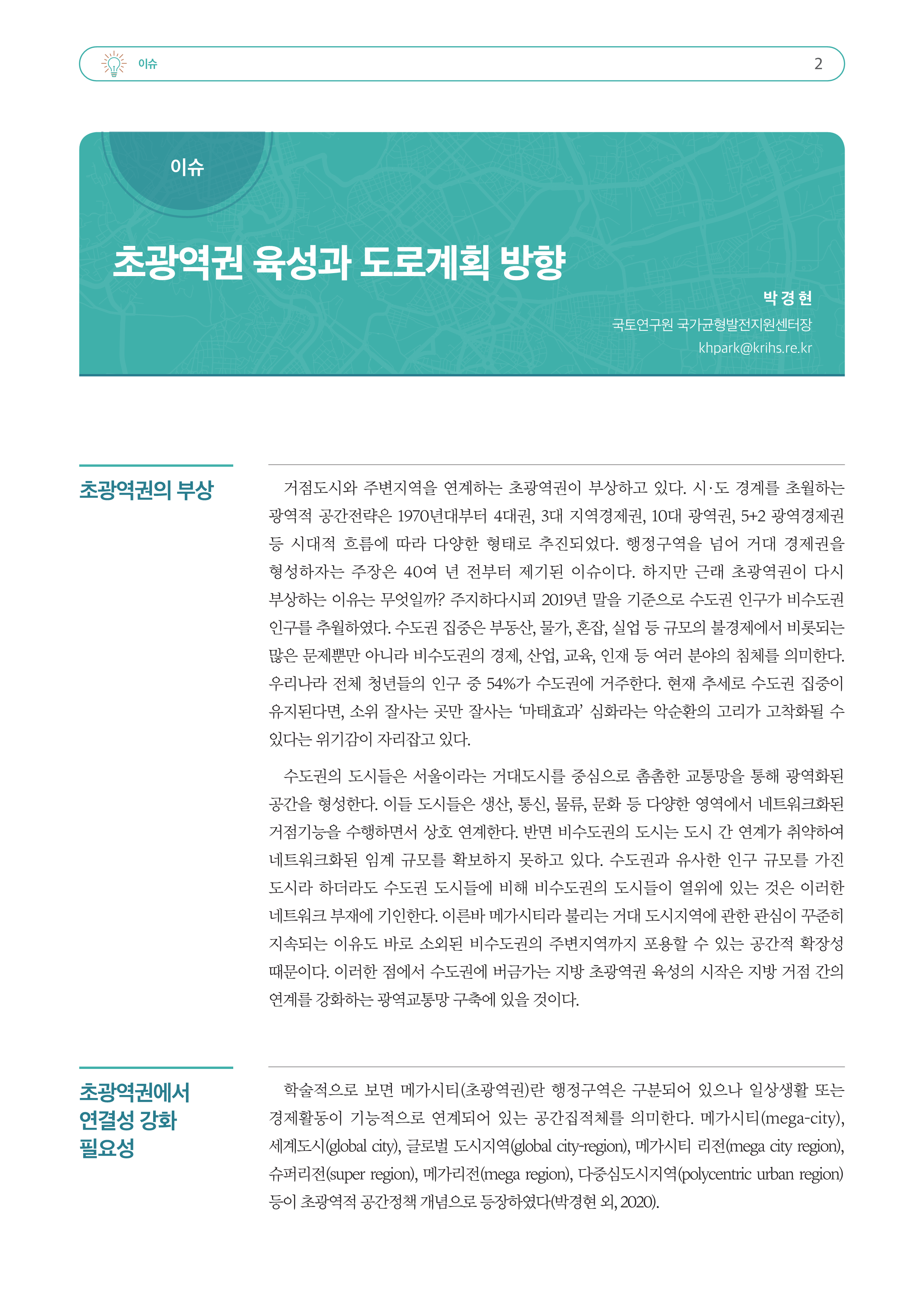 초광역권 육성과 도로계획 방향 (박경현 국토연구원 국가균형발전지원센터장)