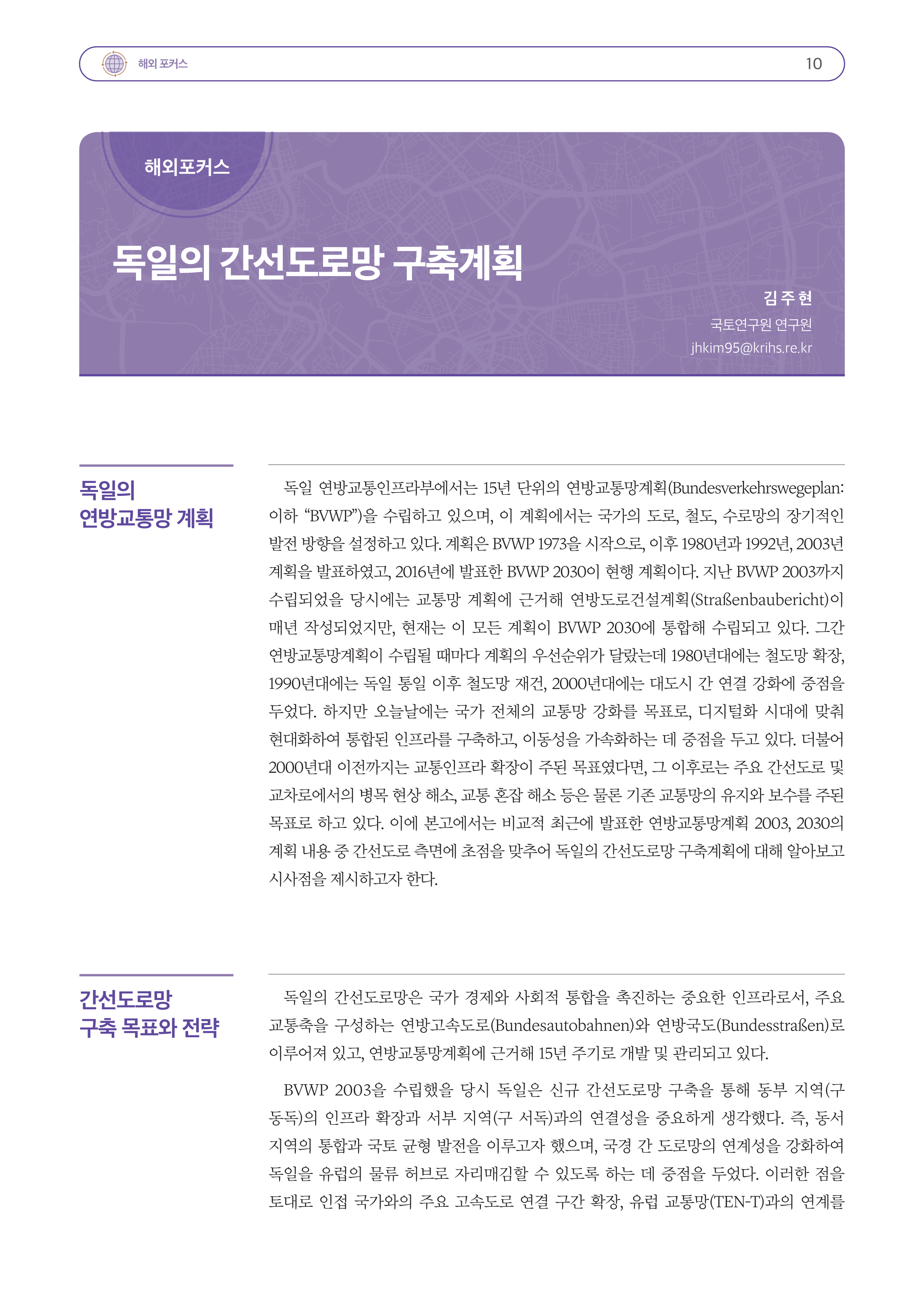 독일의 간선도로망 구축계획 (김주현 국토연구원 연구원)