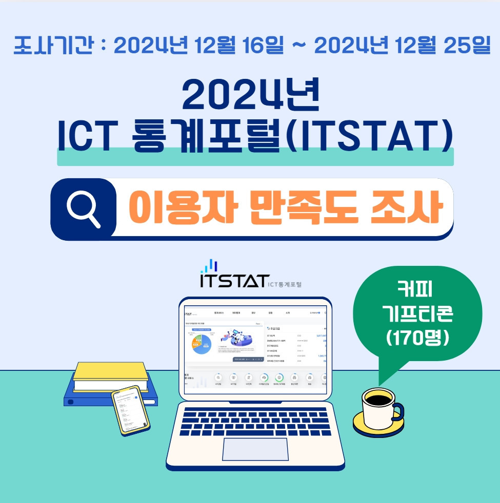 ICT 통계포털(ITSTAT) 작성자힘힘|작성시간24.12.23|조회수20 목록 댓글 0 글자크기 작게가 글자크기 크게가 ICT 통계포털(ITSTAT)통계서비스테마통계정보알림소개 주요지표ICT 생산액20225,817,647 억원정보통신방송기기 수출액2024 09 [잠정]224 억$연구개발집중도20223.2 %ICT BSI(전체)2024 12102ICT산업 인력현황2023 [잠정]1,240,717 명취약계층 인터넷 이용률202384.2 % ICT 뉴스경기지수 인포그래픽 이벤트 통계자료실 ICT통계분석 다음검색 현재 게시글 추가 기능 열기 북마크 공유하기 신고 센터로 신고 댓글 댓글 0 댓글쓰기 답글쓰기 댓글 리스트