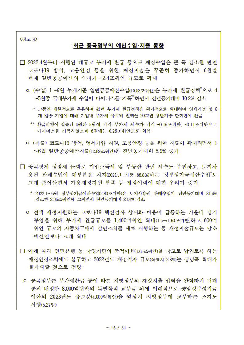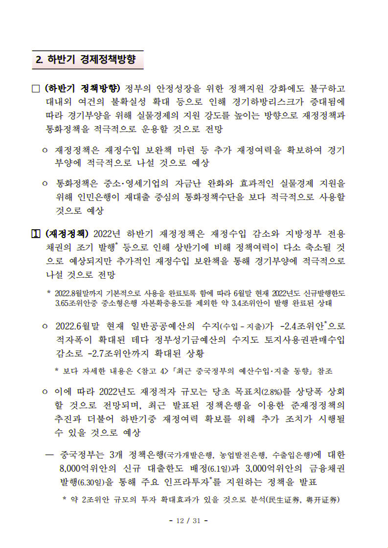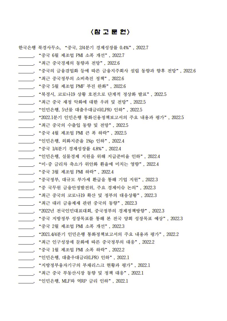 - (조사연구) 2022년 하반기 중국 경제전망 및 주요 이슈(FF).pdf 문서보기 프로그램 새창으로 열립니다.
