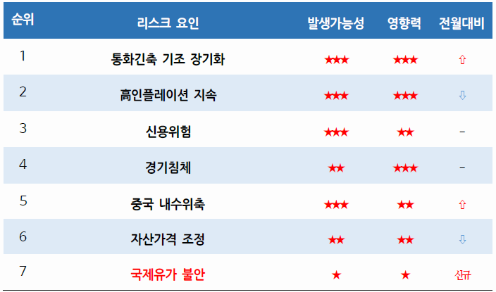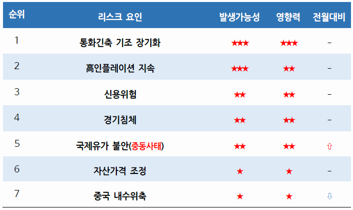 | 1 | 통화긴축 기조 장기화 | ★★★ | ★★★ | - |