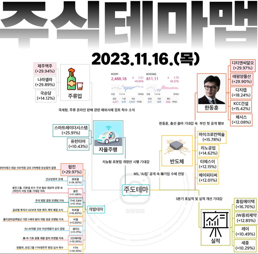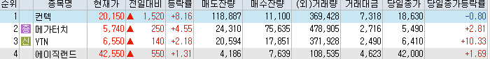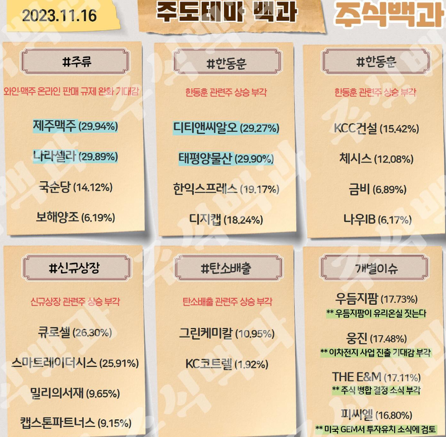 | 2023년 11월 16일 내일 단타 종목(시가기준), 주식 등락율 순위 | |||