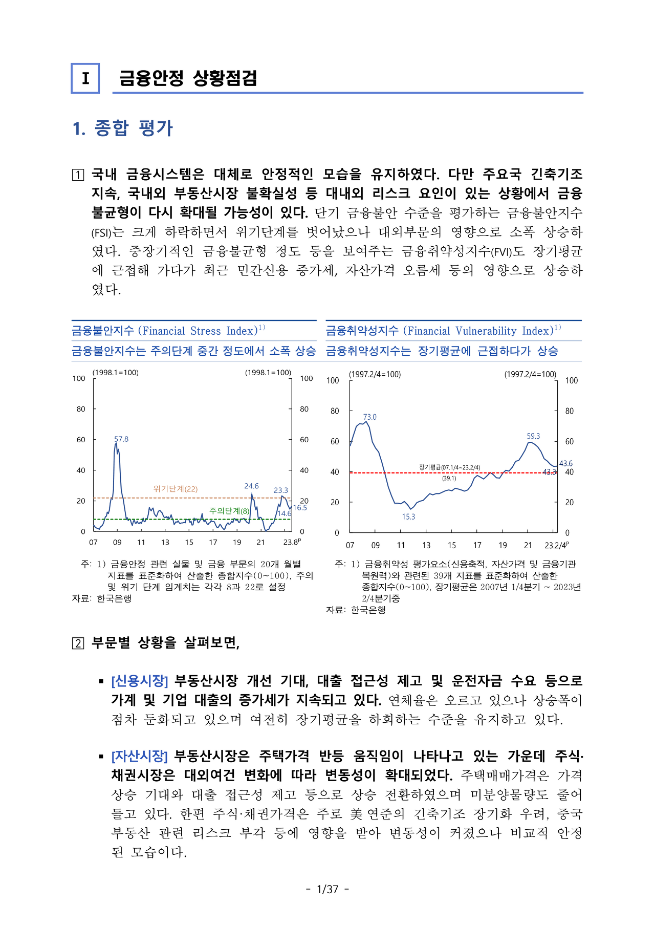 FSI와 FVI, 두 가지 렌즈를 통해 살펴본 최근 금융안정상황