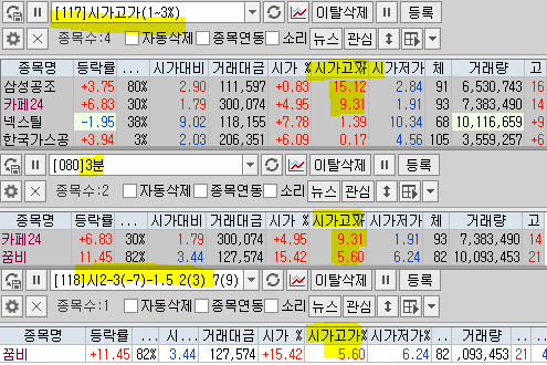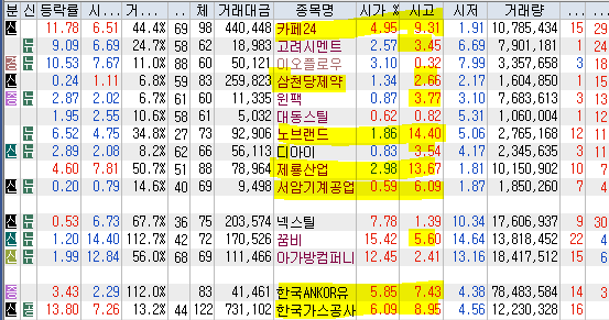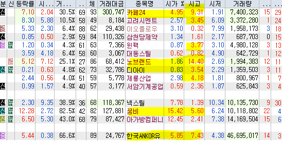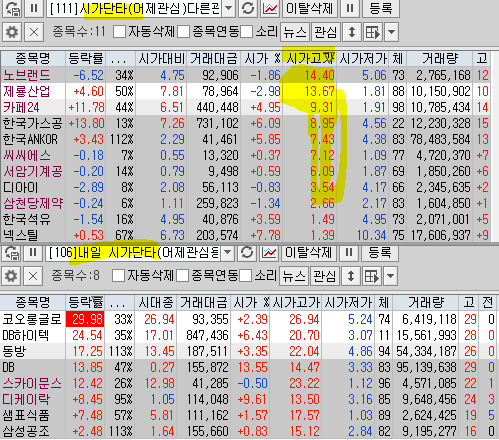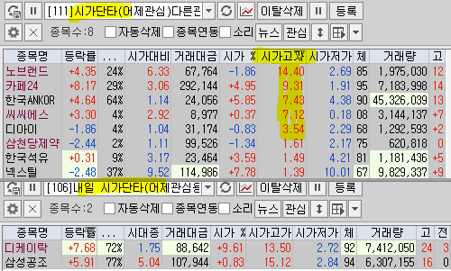 | 시가단타(1~3%) : 카페24, 고려시멘트, 이오플로우, 삼천당제약, 윈팩, 대동스틸, 노브랜드, 디아이, 웨이버스, 제룡산업, 서암기계공업, 한국ANKOR유전 - 넥스틸 - 꿈비, 아가방컴퍼니 | |||