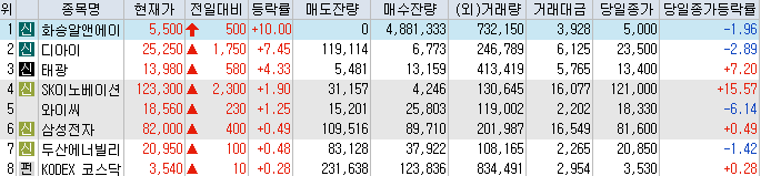 | 내일 시가단타(1~3%) : 코오롱글로벌, DB하이텍, 동방, DB, 스카이문스테크노로지, 디케이락, 샘표식품, 삼성공조 - 화승알앤에이, 디아이 상장 케이비제29호 | |||