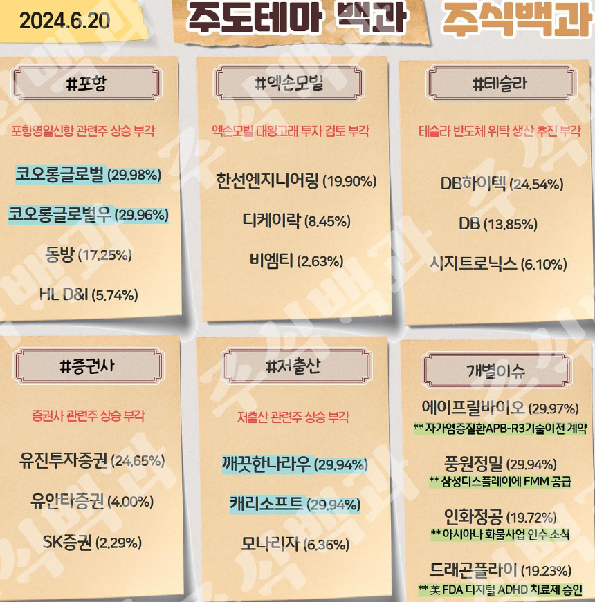 | 2024년 6월 20일 내일 주식 단타 종목(시가기준 1~3%) | |||