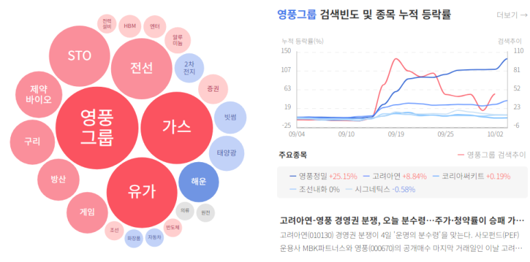 6. 영풍정밀(25.15%) /시가총액 5,016억원: MBK, 동사 공개매수가 3만원으로 상향 소식에 급등