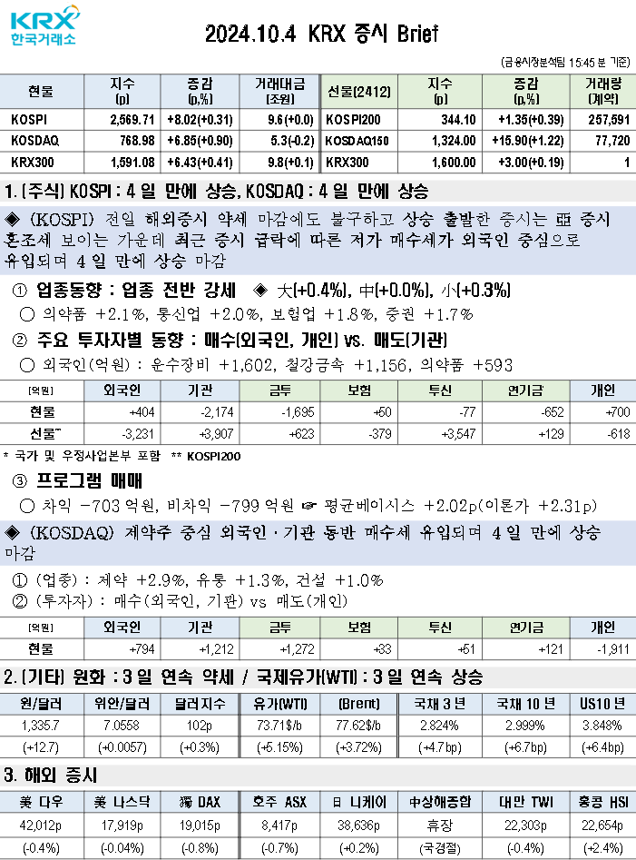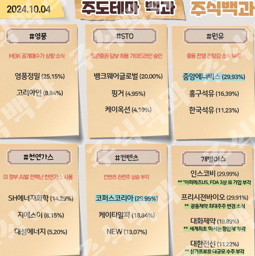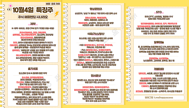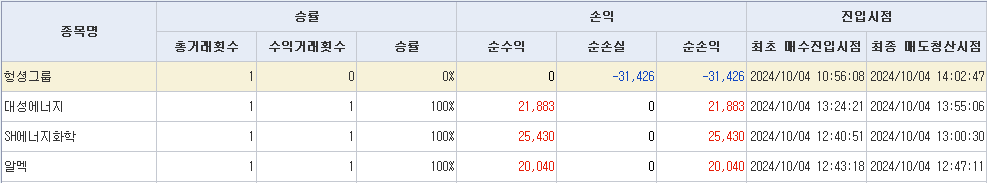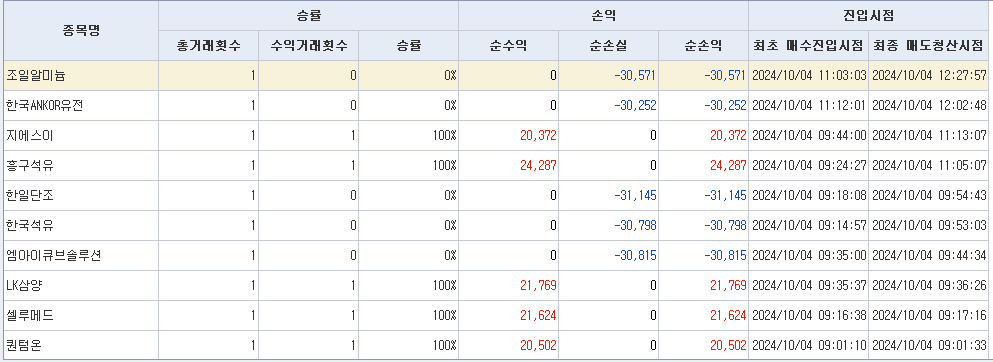 | 2024년 10월 4일 내일 주식 단타 종목(시가기준 1~3%) | |