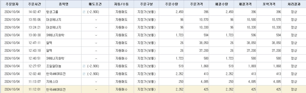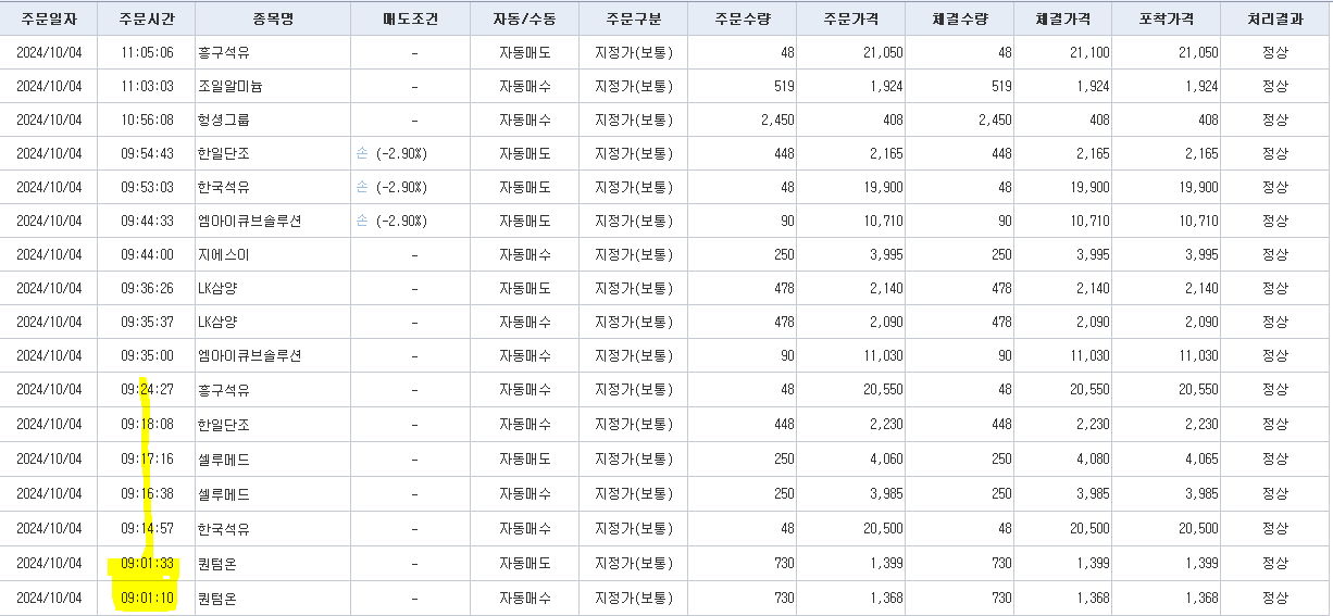 자동 매수/매도 (미체결 자동취소) 9시 ~ 10분 ~ 30분 ~ 2시 30분