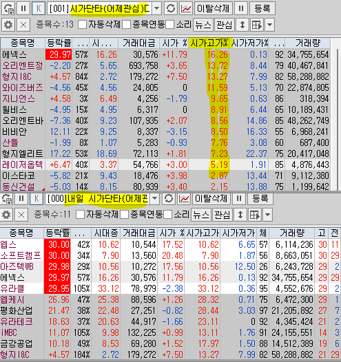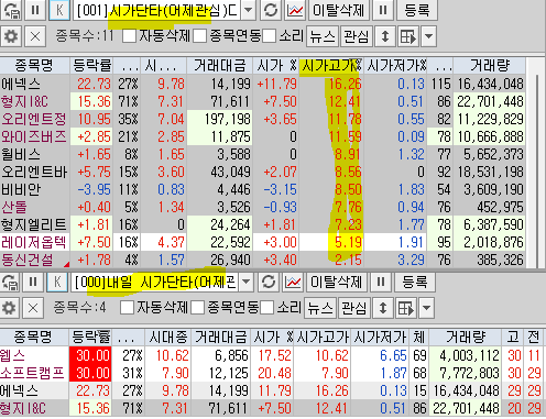 | 내일 시가단타(1~3%) : | |