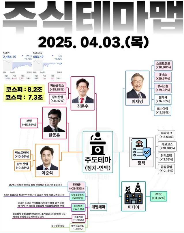 대선관련주 (웹스, 김문수, 한동훈, 이준석, 정책주 등)
