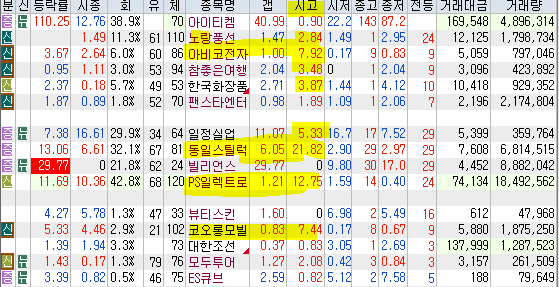 7. 핌스 (14.75%) : 디스플레이관련주, 시총400억대, 메탈마스크사업, 2분기 실적 흑자전환 소식 등, 개별 등락