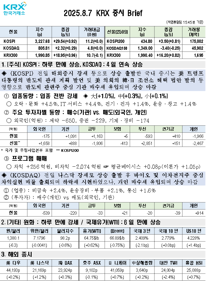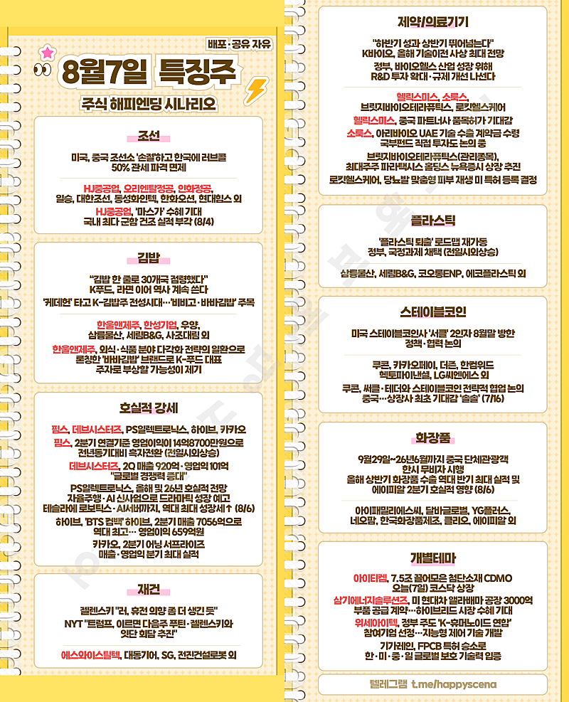 | 2025년 8월 7일 내일 주식 단타 종목(시가기준 1~3%) |