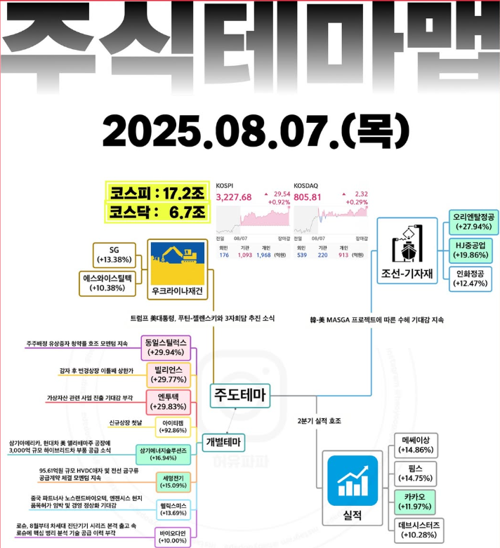 2025년 08월 07일 상승률 TOP30 (by 몽당연필&홈런왕, 관리종목, 우선주, 스팩주 제외)