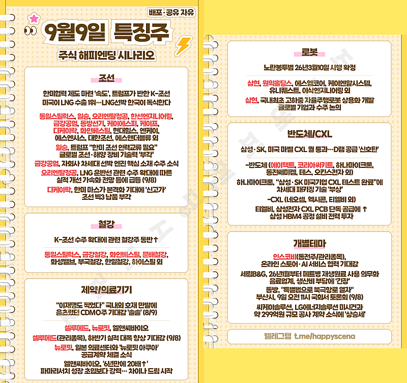 | 2025년 9월 9일 내일 주식 단타 종목(시가기준 1~3%) |