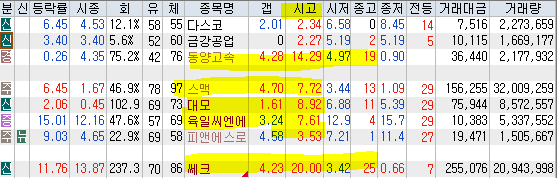 | 시가단타(1~3%) : 다스코 금강공업 동양고속 ++ 스맥 대모 육일씨엔에스 피앤에스로보틱스 + 쎄크 |