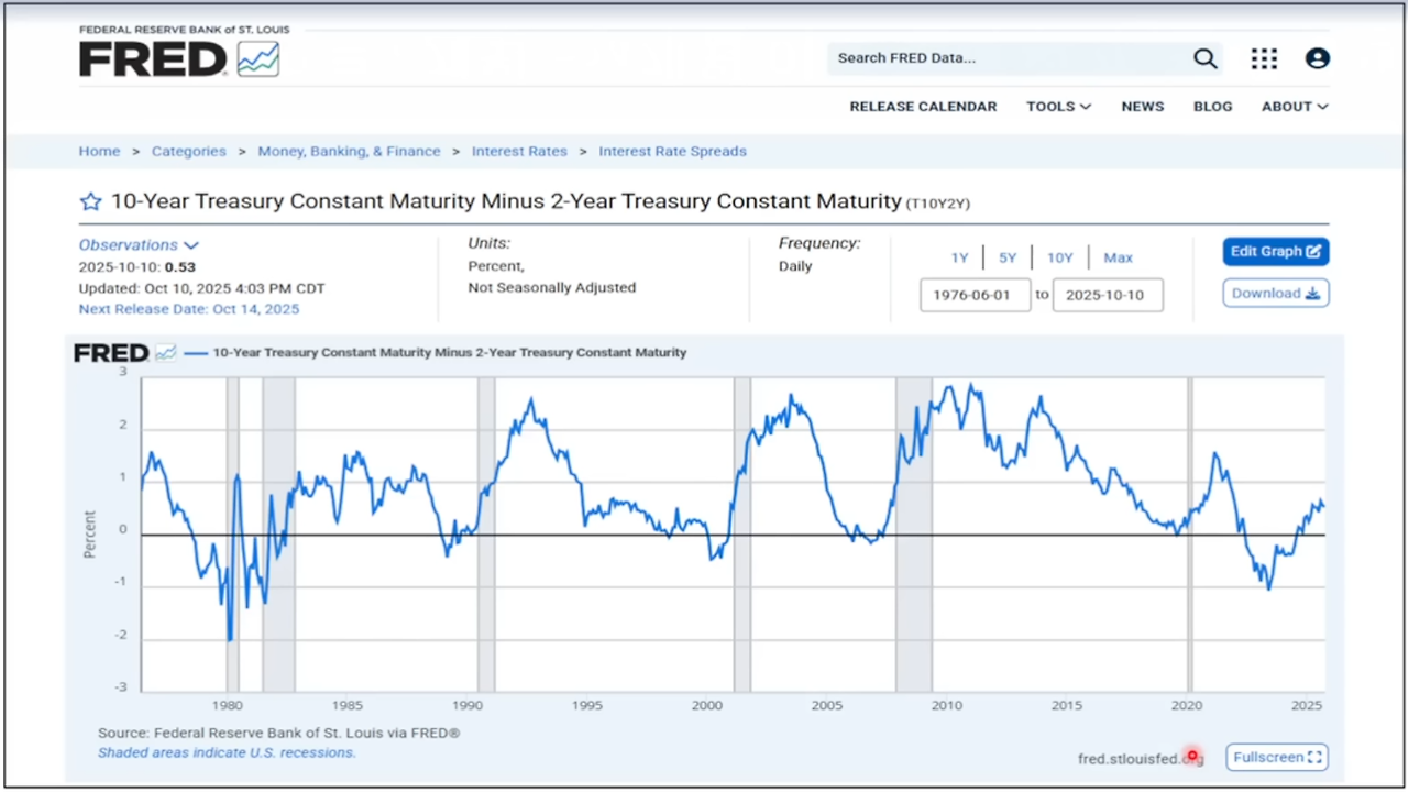장단(10년, 2년)기 금리 역전 6~24개월 후 경기 위기 또는 침체