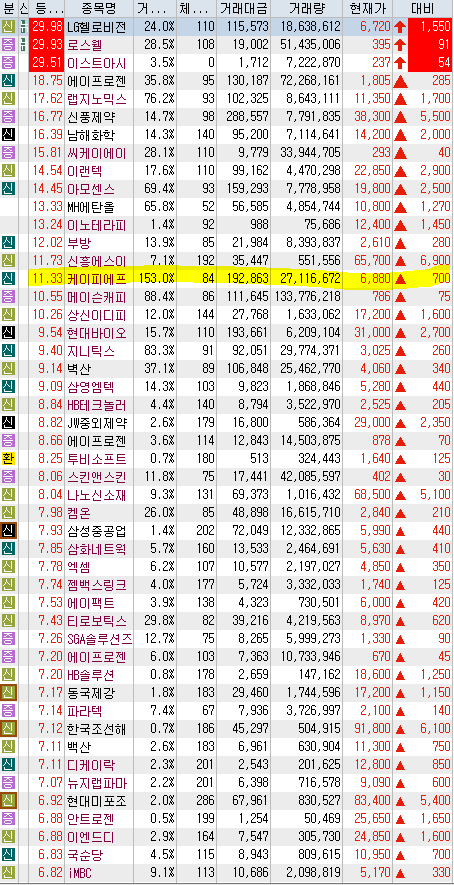 15. 케이피에프 (11.33%) : 금속주, 시총1200억대, 볼트&너트사업, EU 8월부터 러시아 석탄 수입 금지 ⇨ 인도네시아 석탄 광산 지분 ⇨ 석탄관련주 부각