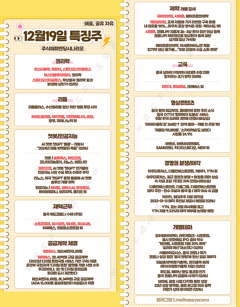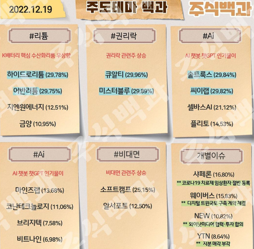 2022년 12월 19일 내일 시가단타 예상, 상한가 및 급등주, 시간외 특징주