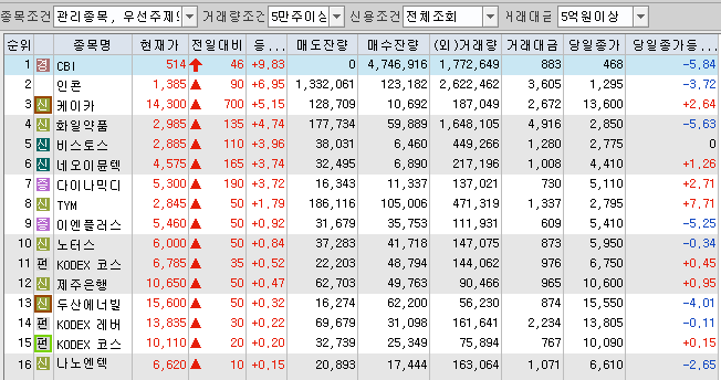 16. 코난테크놀로지 (11.06%) : SW관련주, 시총1300억대, AI솔루션사업, 인공지능(AI) 챗봇 '챗GPT'의 공개 ⇨ 코난챗봇, 코난보이스 등 다양한 AI 서비스사업 ⇨ 인공지능관련주 부각