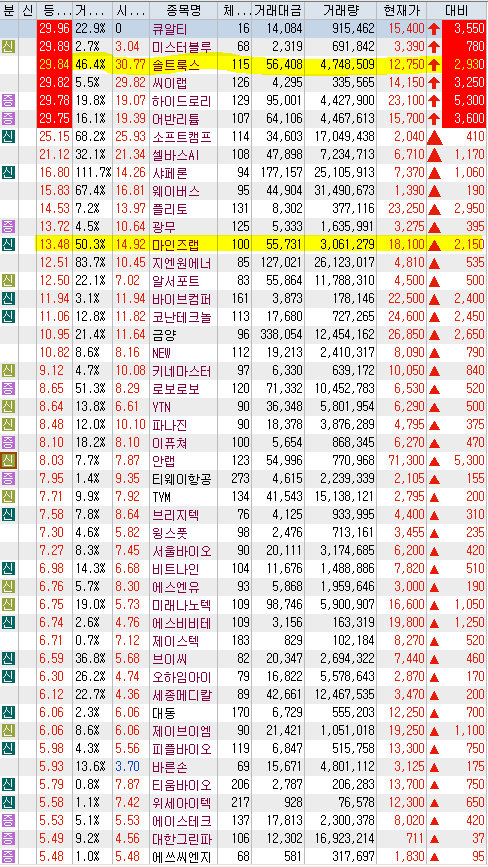 1. 큐알티 (29.96%) : 반도체관련주, 시총600억대, 반도체평가사업, 공모가 44000원 200% 무상증자 실시, 권리락 효과, 개별 등락