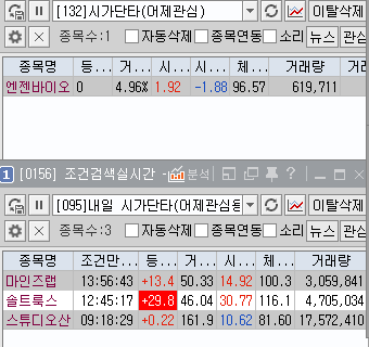 | 시가단타(1~3%) : 에스씨엠생명과학, 엔젠바이오, 소마젠 | ||