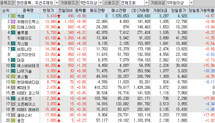8. 에스비비테크(15.94%) : AI 테마 상승 속 SKT AI 바리스타 관련주 부각에 급등