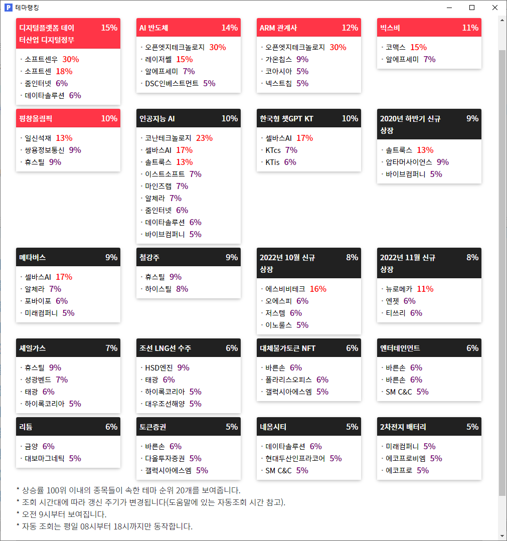 23. 쌍용정보통신(8.9%) : 메타버스 플랫폼 '본디(Bondee)' 흥행 소식 속 관련주로 부각되며 강세