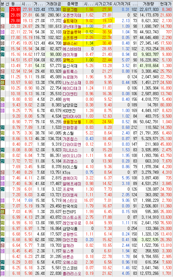 30. 프리엠스(7.72%) : 상승 이유 알 수 없음